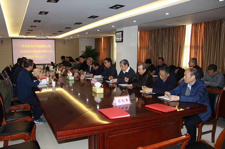 2018年1月5日下午,公司與中國地質大學(武漢)聯合共建產學研基地簽約儀式在十二樓會議室舉行。副總經理來光主持會議,河南省水利廳科技教育處處長陳德新致辭,董事長趙健倉代表公司致歡迎辭,向出席儀式的各位來賓表示熱烈的歡迎,希望與中國地質大學深入交流合作,謀求更大支持,優勢互補,創造雙贏。